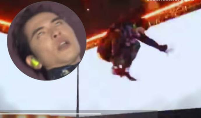 值得注意的是,在電視轉播畫面中,蕭敬騰自高處跳落後,畫面隨即被切換。