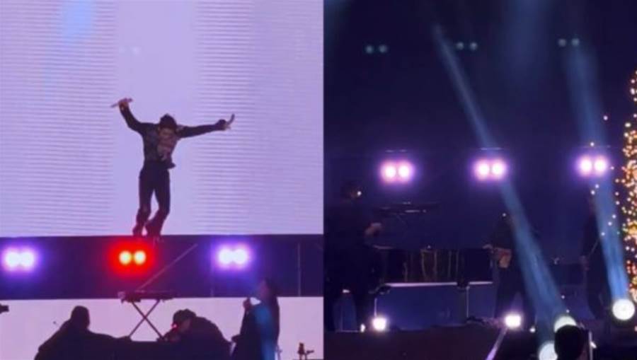 然而,根據現場民眾上傳的影像顯示,他在落地後疑似一度重心不穩而跌坐在地,隨後吉他手曾短暫靠近關切,但並未進一步動作,蕭敬騰也很快自行起身,繼續完成演出。