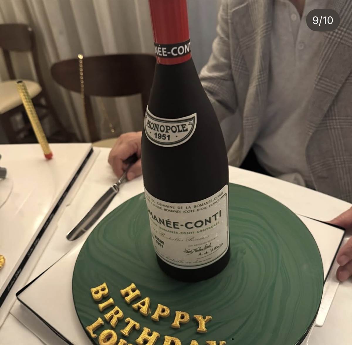 在多張大合照中,吳志誠與劉嘉玲都坐在第一排,在兩人面前,一個是Labubu蛋糕,一個是紅酒造型的蛋糕。紅酒造型的蛋糕是為吳志誠專屬打造的,因為吳志誠喜歡收藏紅酒,他曾在2012年的時候以7700萬在法國的勃艮買下了一個酒莊,自產自銷,轟動一時,此次生日會的紅酒,大概也是吳志誠提供的。