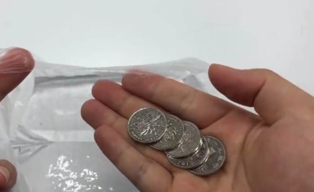 有些物品的包裝袋沒有預留撕開的切口,這樣的包裝袋想要撕開是十分費勁的。但是只要我們身邊有兩枚硬幣,像這樣疊在一起,然后輕輕一撕,包裝袋就輕松的被撕開了。