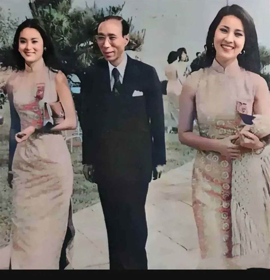 在這張照片中,兩位女星穿著旗袍的模樣尤為引人注目。旗袍以其獨特的東方韻味和優雅的線條,完美地襯托出她們各自的風采。林青霞的旗袍顯示出她的成熟魅力;而林鳳嬌穿旗袍透出一種柔和的氣質。兩人站在邵逸夫的身旁,各自散發著不同的光芒,卻又和諧地融合在一起,展現了當年華語影壇的輝煌景象。