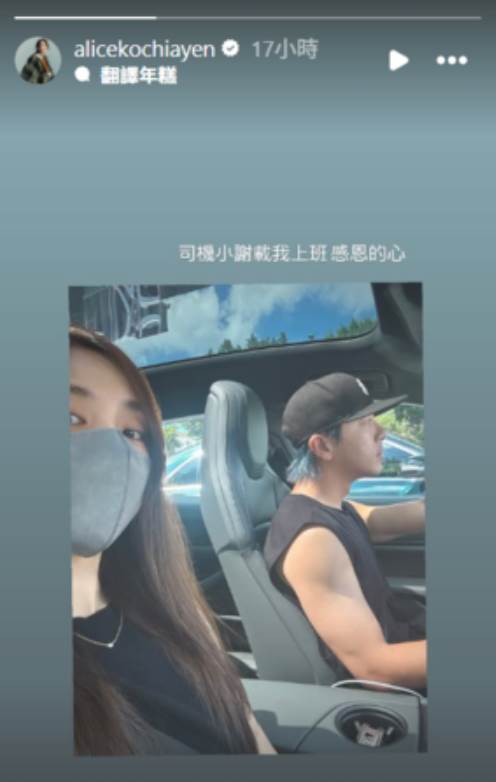▲柯佳嬿謝謝坤達送她上班。(圖/翻攝自Instagram/alicekochiayen)