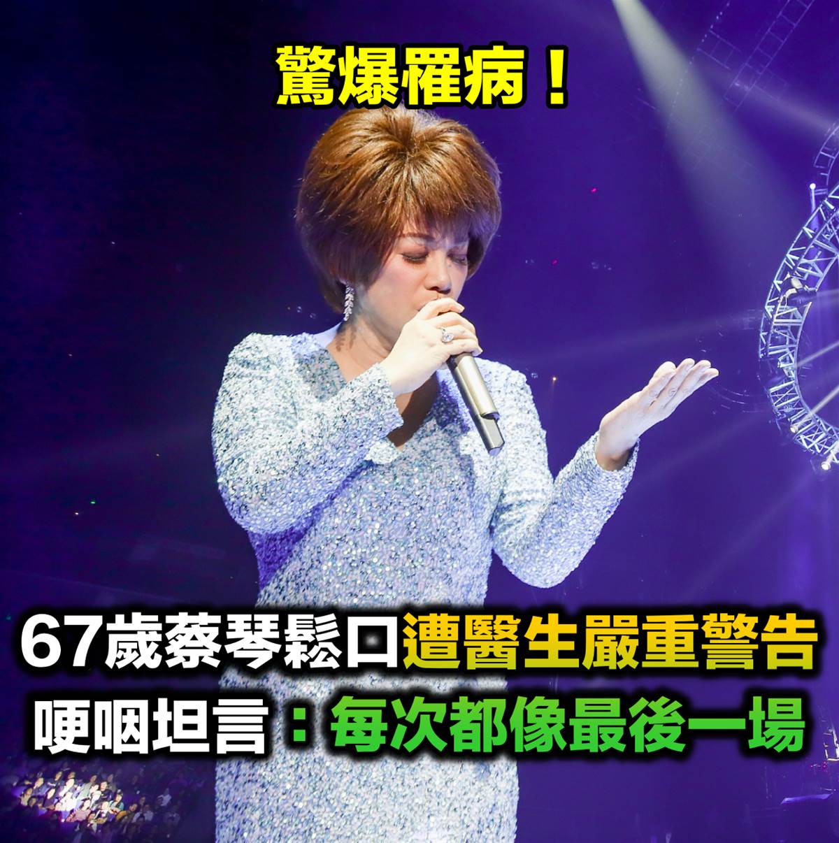 據《ETtoday》報導,蔡琴過去曾說,健康面臨健康,被好友陳文茜透露罹患怪病。這位金嗓歌后罕見地分享自己的身體狀況,表示其實也不是什麼怪病,主要是遭受耳鳴、暈眩等癥狀困擾。而且醫生也已經講重話,提醒她若不及時就醫治療,恐有耳中風的危險。